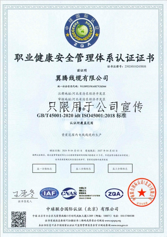 職業(yè)健康安全管理體系認(rèn)證證書(shū)
