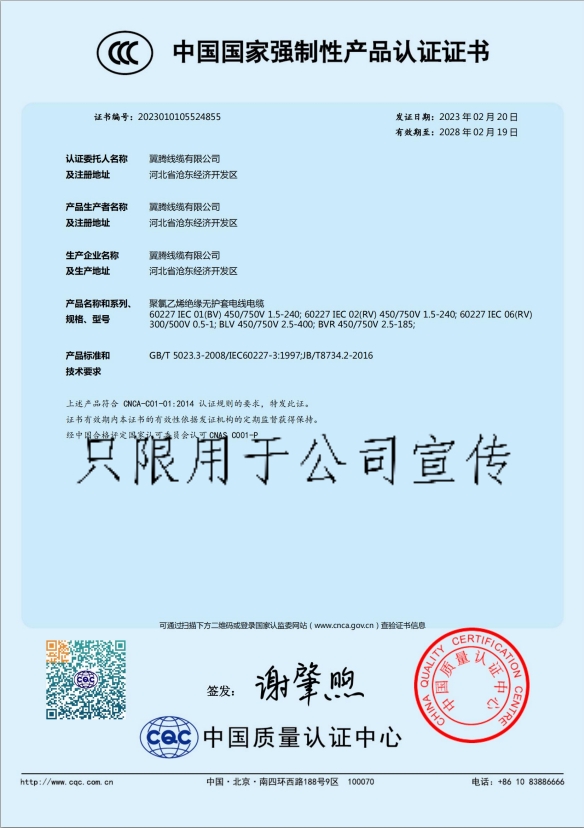 中國(guó)國(guó)家強(qiáng)制性產(chǎn)品認(rèn)證證書(shū)